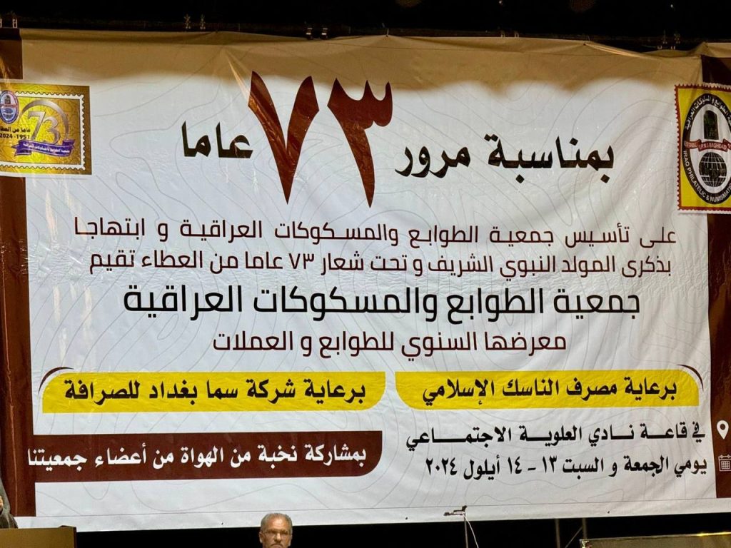 شارك المكتب الاعلامي للرابطة العراقية للمصارف الإسلامية حفل المعرض السنوي لجمعية الطوابع والمسكوكات العراقية والذي أقيم على القاعة الرئيسية لنادي العلوية في بغداد بمناسبة الذكرى السنوية ٧٣ على تأسيسها والتي كانت برعاية مصرف الناسك الإسلامي و شركة سما بغداد للصيرفة وسط حضور عدد من منظمات المجتمع المدني وإعلاميين والمهتمين بالتراث الشعبي