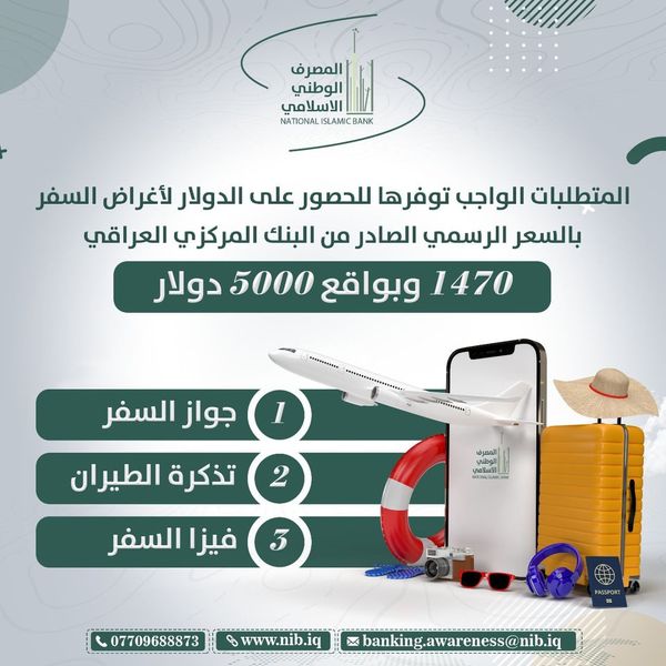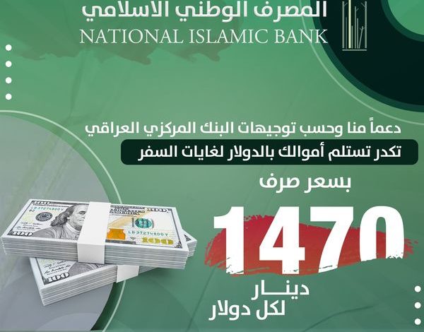 واكد الجميلي على الدعم المتواصل للمواطنين وذلك بحسب توجيهات البنك المركزي العراقي لسعر صرف الدولار ب 1470 دينار لكل دولار وذلك لأغراض السفر وبواقع 5000 الاف دولار مع استصحاب المتطلبات الواجب توفرها للحصول على الدولار لاغراض السفر بالسعر الرسمي الصادر من البنك المركزي العراقي وهي جواز السفر وتذكرة الطيران وفيزا السفر