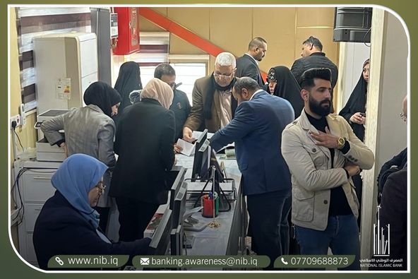 تابع السيد رئيس مجلس الإدارة للمصرف الوطني الإسلامي الدكتور عقيل الجميلي عملية بيع الدولار للزبائن لأغراض السفر و بحضور السيدة قسمة صالح علي مدير عام دائرة مراقبة الصيرفة